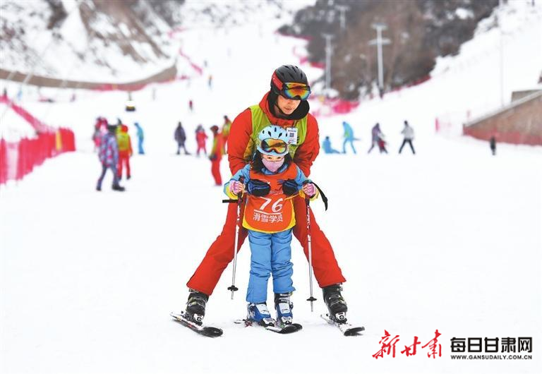 教练辅导小学生练习滑雪 史有东