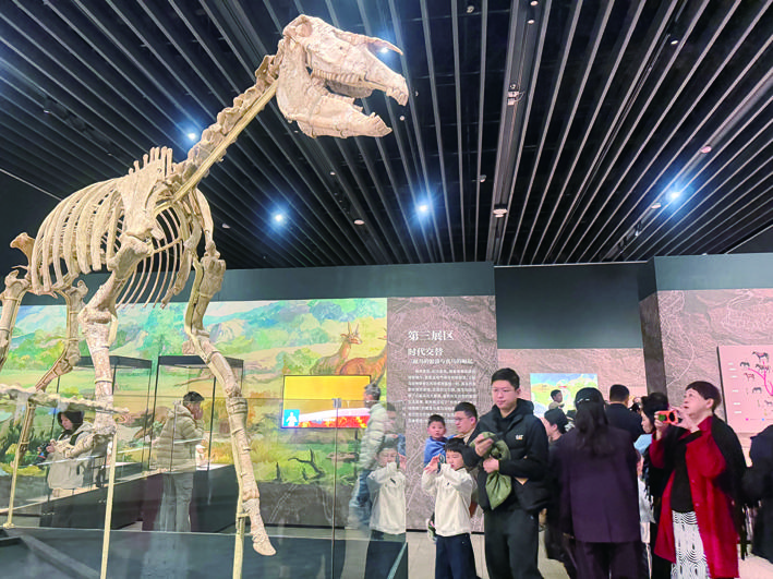 展览的核心叙事,由沉睡千万年的古动物化石生动书写。和政古动物化石博物馆馆长马海燕介绍,此次展览以“十项世界之最”化石标本为核心,系统展示了和政作为“化石王国”的独特地位。“这是世界级古生物资源的科学传播,旨在搭建史前文明与现代文明对话的桥梁。”