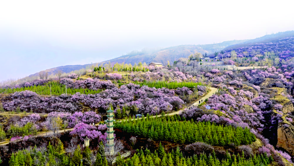东乡唐汪川的杏花铺满山野,粉白花瓣一团团、一簇簇,随风摇曳,吐露芬芳,勾勒出一幅醉人的春日田园画卷。
